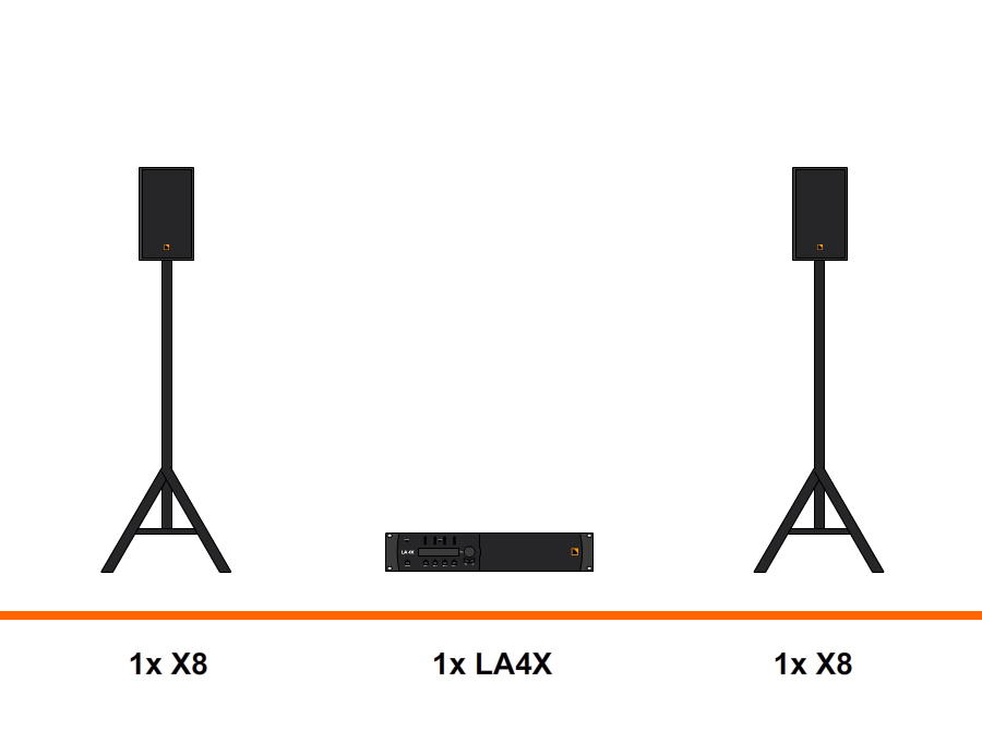 Deze L-Acoustics geluidset is een stereo set bestaande uit een L-Acoustics X8 speaker op statief.